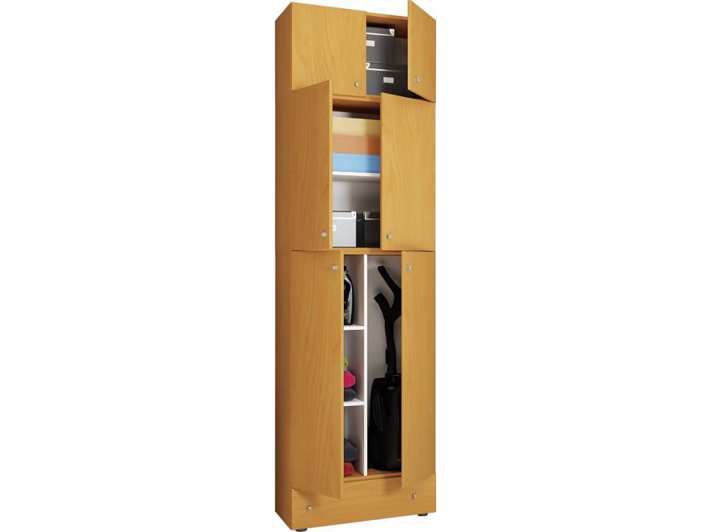 Úklidová skříňka Lona XXL s otočnými dveřmi s nástavcem a zásuvkou, buk