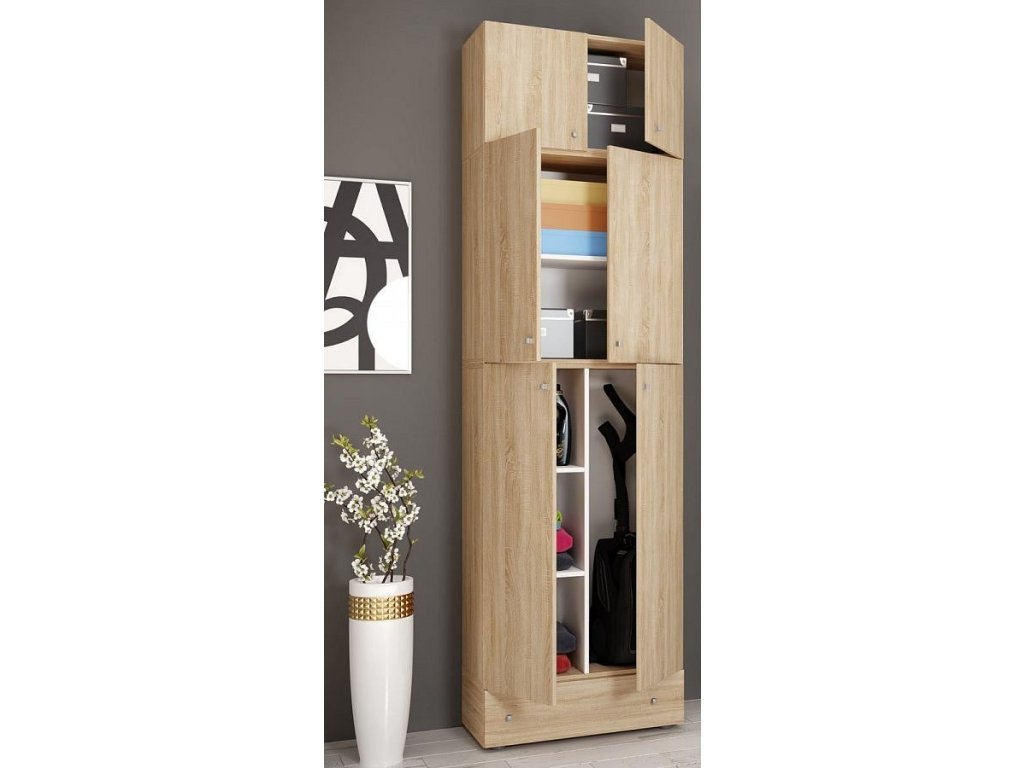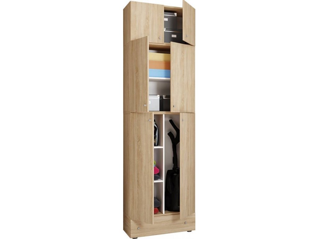 Úklidová skříňka Lona XXL s otočnými dveřmi s nástavcem a zásuvkou, dub sonoma
