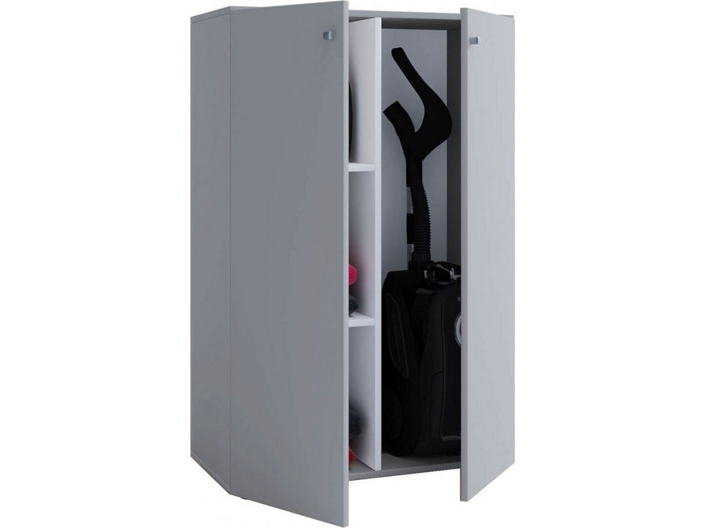 Skříňka má praktické rozdělení polic s velkou přihrádkou například na vysavač. Kování je vyrobeno z vysoce kvalitního kovu.