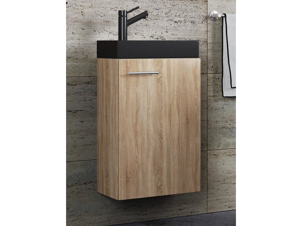Stylová skříňka do koupelny VCM Slito spojuje eleganci, funkčnost a úsporu místa. Tento kompaktní set se skládá z umyvadla a skříňky pod umyvadlo, které tvoří dokonale sladěný celek – ideální řešení pro malé koupelny či toalety pro hosty.