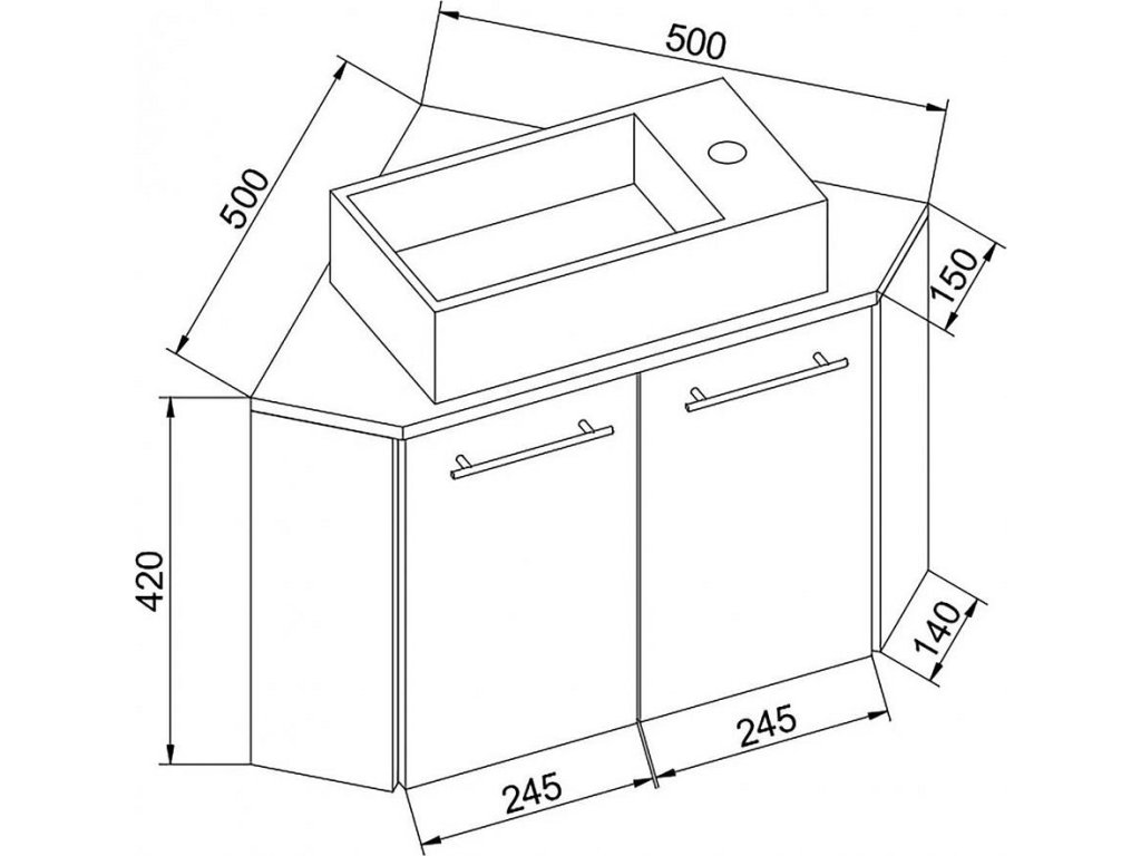 - Rozměry celkem (skříňka + umyvadlo): výška 53 × šířka 50 × hloubka 50 cm