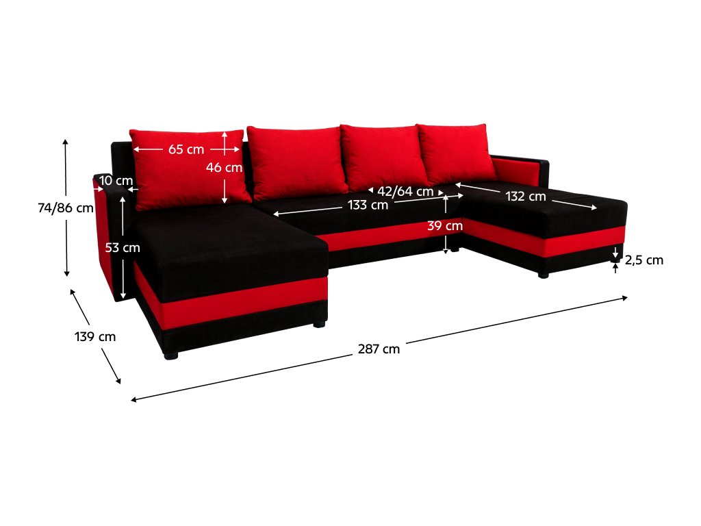 Univerzální sedací souprava, černá/červená, PAULITA U
