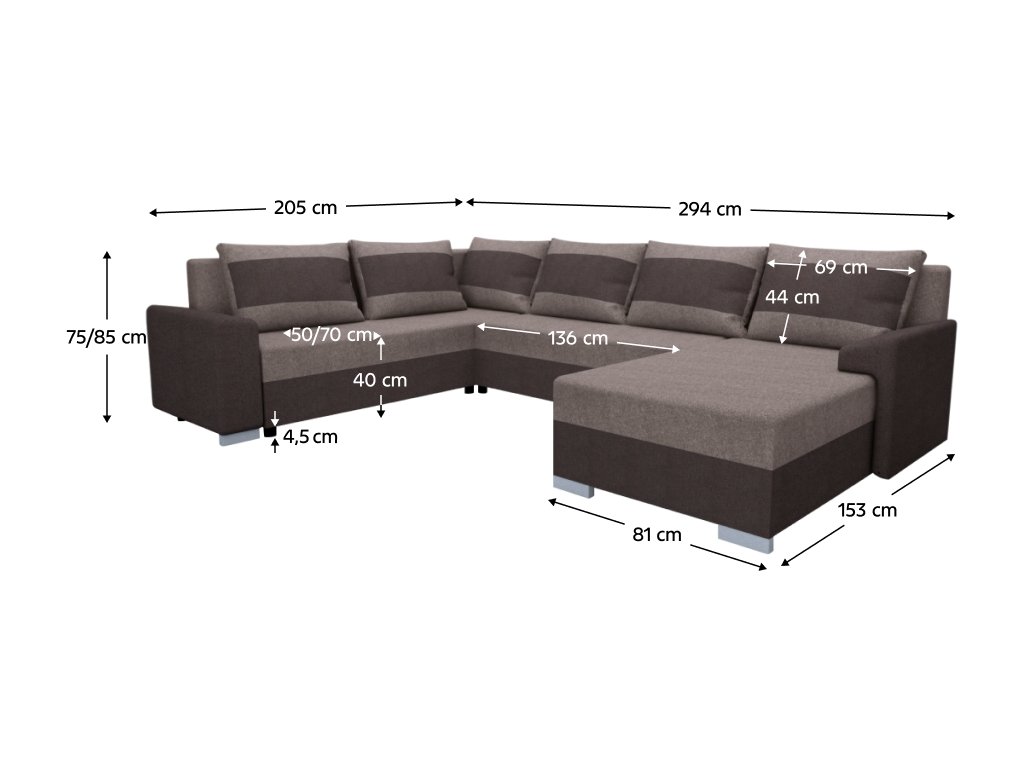 Rozměry (ŠxHxV): 294x153/205x75/85 cm
