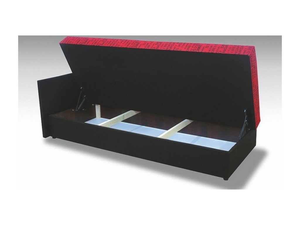 CASA 41010 Pohodlná válenda v klasickém stylu. Pohovka obsahuje praktický úložný prostor. Spací plocha je 200 x 80 cm. Pohodlné sezení zaručují bonelové pružiny spolu s PUR pěnou. Nosnost pohovky je 90 kg. Můžete si vybrat, zda si přejete čelo postele na levé nebo pravé straně. Barevné provedení - látka London 13100 s potiskem ( červená ) a látka Sawana 14 ( černá ). Polštář je součástí válendy.