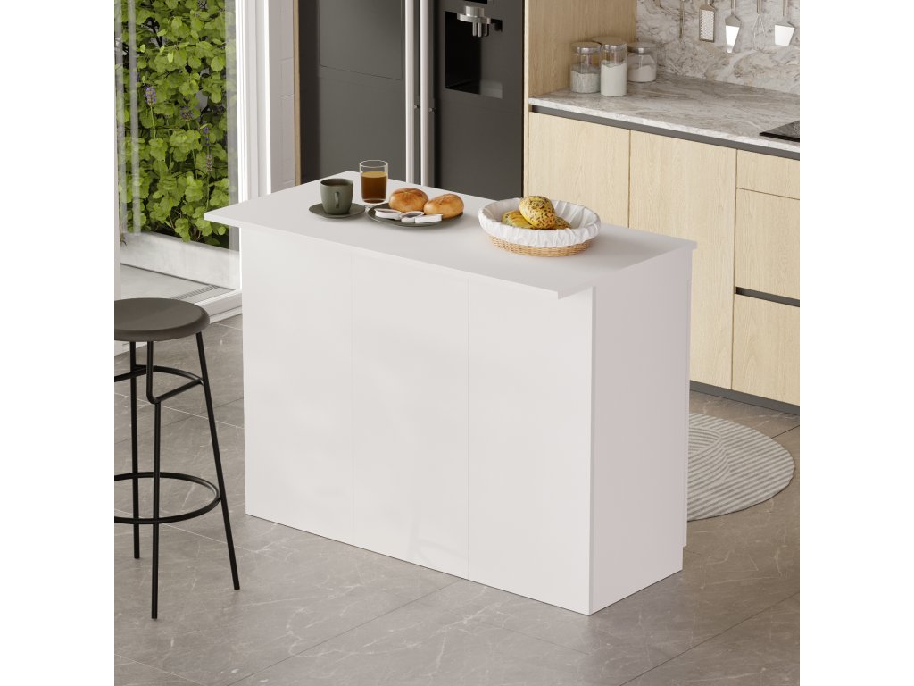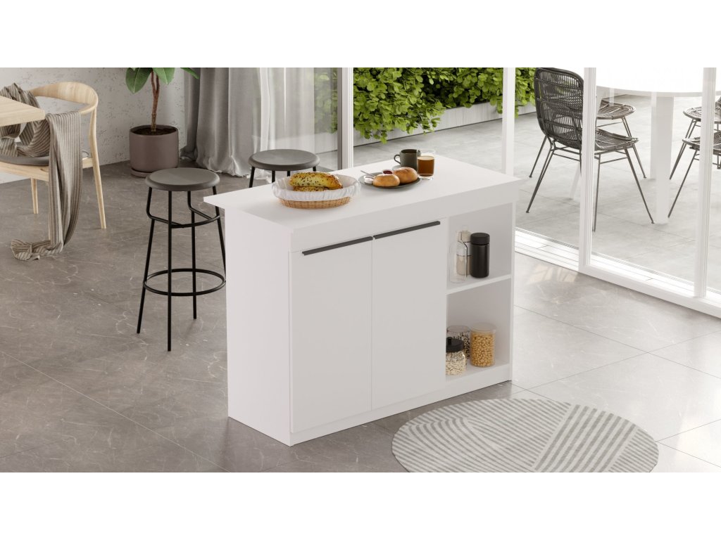 Kuchyňský ostrůvek je praktickým a stylovým doplňkem do vaší kuchyně. Díky kvalitnímu LTD materiálu a elegantnímu provedení v bílé barvě je tento ostrůvek odolný, snadno se udržuje a dokonale zapadne do každého kuchyňského interiéru. S vybavením zahrnujícím dvě dvířka a regálek poskytuje dostatek úložného prostoru pro organizaci kuchyňských potřeb.