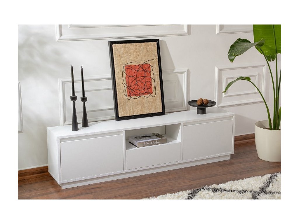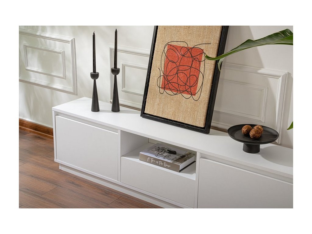 Náš televizní stolek je vyroben z vysoce kvalitních materiálů a je navržen tak, aby vydržel. Dřevotřísková deska s melaminovým povlakem je odolná vůči poškrábání, skvrnám a poškození vodou, takže váš stojan bude po mnoho let vypadat jako nový. Přírodní bílá barva je všestranná a nadčasová, takže se snadno hodí do jakéhokoli stylu interiéru.