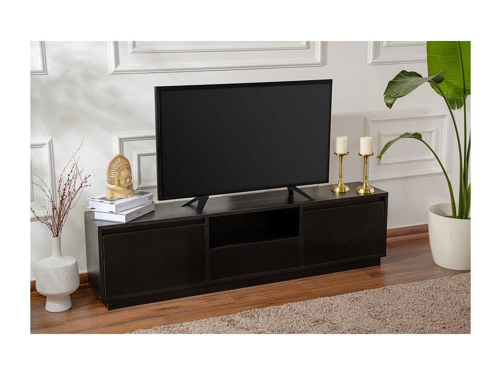 Tento televizní stolek je vyroben ze 100% dřevotřísky s melaminovým povlakem a je nejen stylový, ale také odolný a má dlouhou životnost. Tloušťka 18 mm zajišťuje stabilitu a robustnost, zatímco dřevěně černá barva dodá každé místnosti nádech sofistikovanosti.