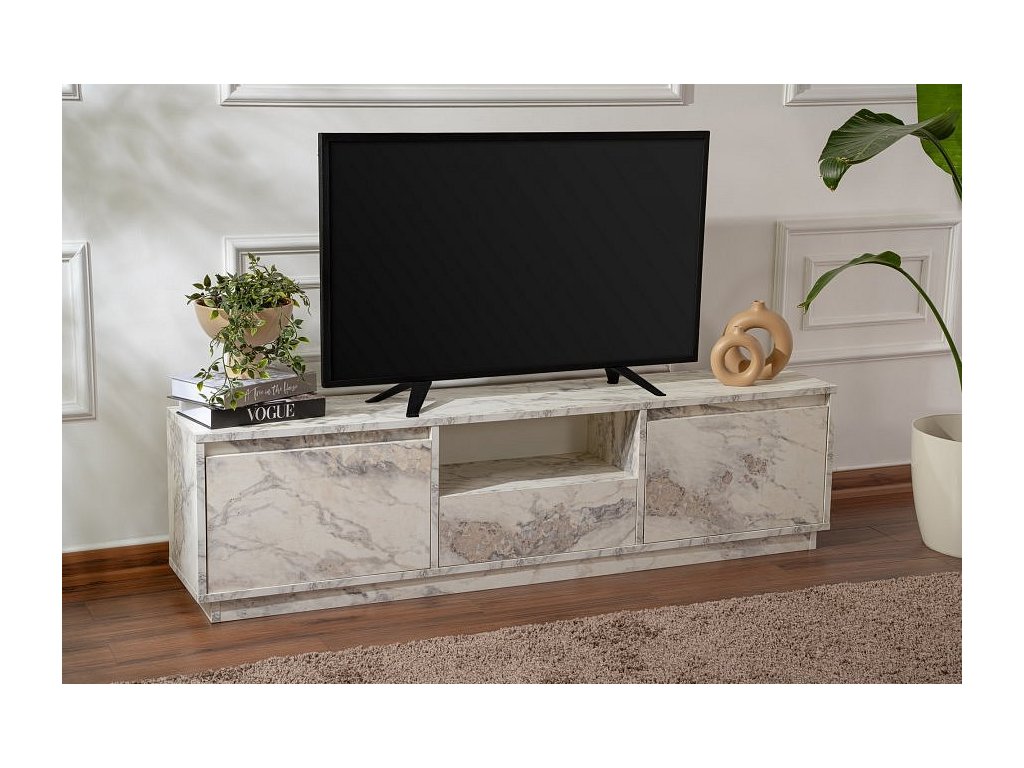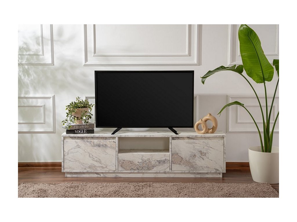Proměňte svůj obývací pokoj ve stylový a funkční prostor s naším nádherným televizním stolkem v barvě frézie a mramoru. Tento televizní stolek není jen kus nábytku, je to ztělesnění elegance a sofistikovanosti.