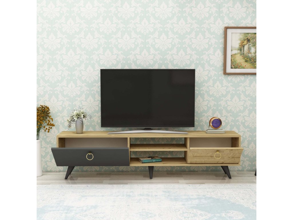 VATERA TV stolek na nožičkách, dub / antracit
