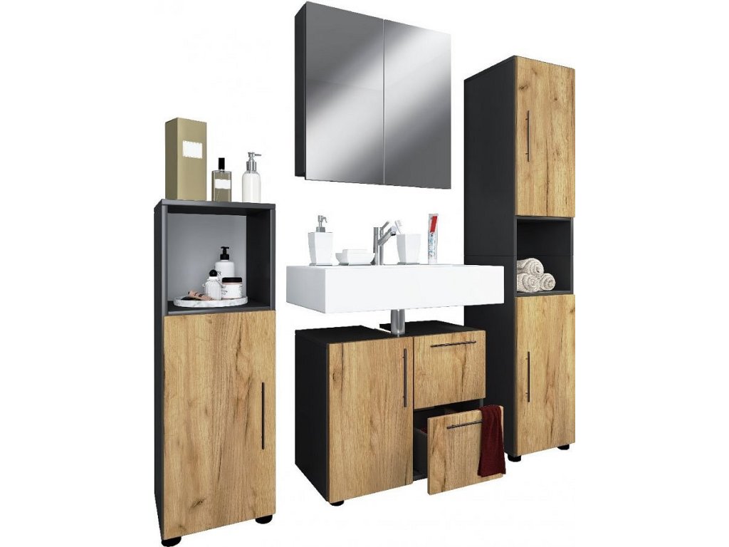 VCM 4dílná koupelnová sada „Flandu“ se zrcadlovkou, antracitová