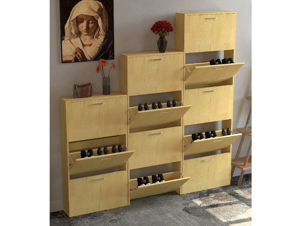 Botník: - Rozměry cca v. 144 x š. 59 x h. 17 cm - 3 přihrádky lze otevřít - Pro cca 9 párů bot Botník „Sulos L“ se 2 zásuvkami se perfektně hodí do chodby. S hloubkou pouhých 17 cm se volně stojící botník perfektně hodí do chodby a umožňuje vám uložit všechny boty na jednom místě a zároveň je udržovat v pořádku. Sklápěcí botník lze kombinovat s dalšími botníky z řady „VCM Sulos“. Od 70. let 20. století se VCM specializuje na návrh, výrobu a distribuci nábytku s férovým poměrem cena/výkon a již zkrášlila miliony domácností.