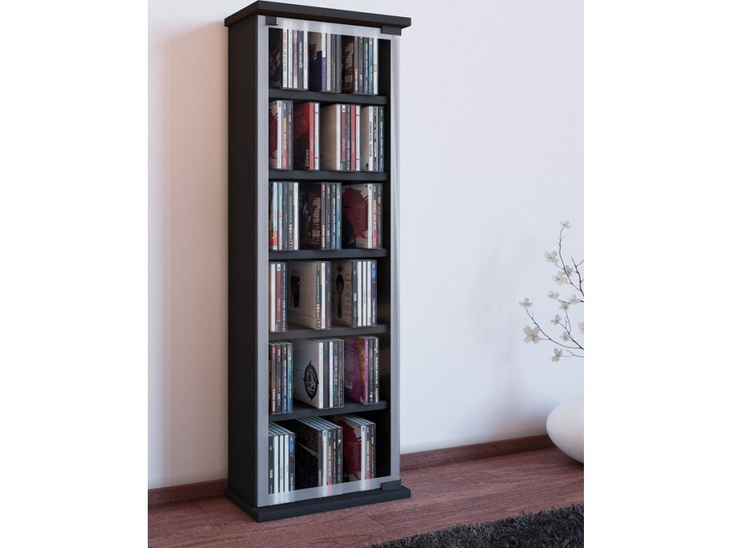 VCM CD/DVD skříň "Classic" má dvířka z tvrzeného bezpečnostního skla s keramickým potiskem. Nabízí 5 variabilních polic pro 150 CD, 65 DVD nebo 36 videí. Skříň má reprodukci textury dřeva. Rozměry jsou 91.5 x 31 x 18 cm.