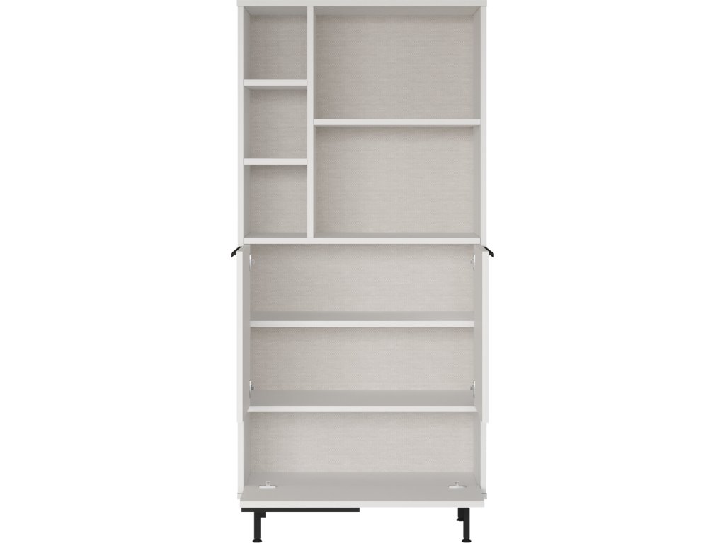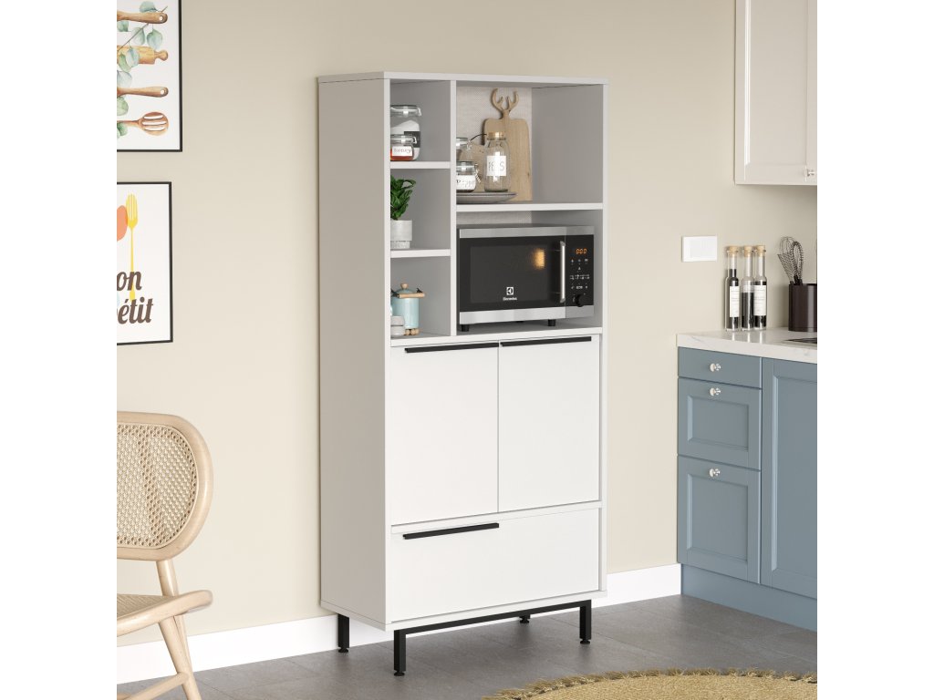 Skříňka je praktickým a stylovým řešením pro vaši kuchyň. Vyrobena z kvalitního LTD materiálu a kovu, tato vysoká skříňka nabízí dostatek úložného prostoru a elegantní design. Díky plným dvířkům a regálku poskytuje ideální místo pro mikrovlnku, kuchyňské spotřebiče a další nezbytnosti.
