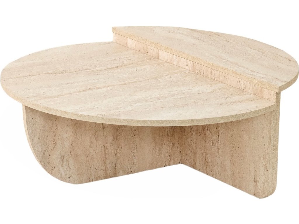 Stolek je navržen s ohledem na praktičnost a moderní styl. Jeho složitelný design umožňuje snadné skladování a flexibilní použití, což oceníte v menších i větších prostorách. Atypický tvar a povrch v dekoru travertin dodávají interiéru jedinečný a elegantní vzhled.