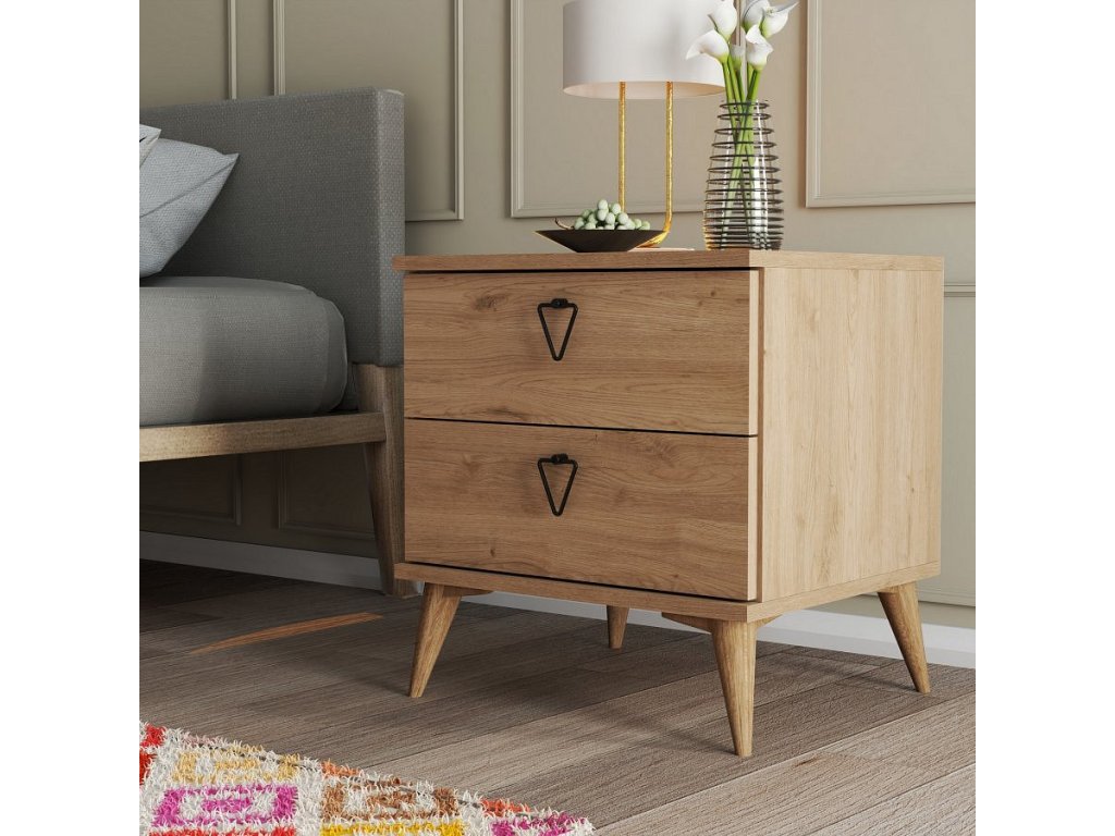 Díky elegantní dubové barvě a modernímu designu dodá tento noční stolek každé ložnici nádech sofistikovanosti. Tloušťka 18 mm zajišťuje robustnost a dlouhou životnost, zatímco plastové nohy poskytují stabilitu.