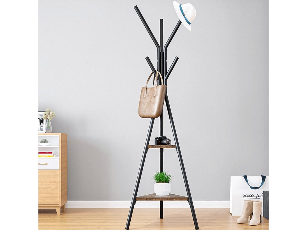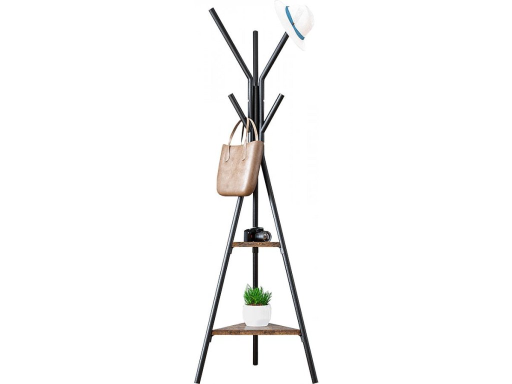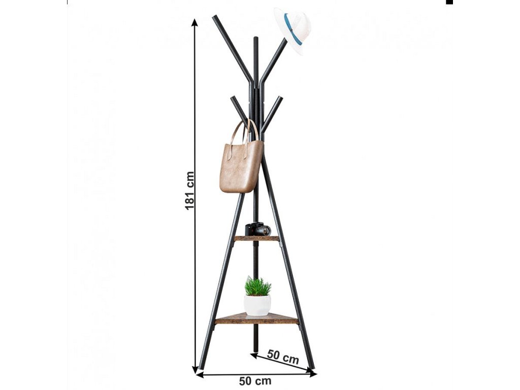 Materiál: kov / dřevo Barva: černá / dub smoke Rozměry (ŠxHxV): 50x50x181 cm Nosnost: 20 kg praktický moderní design 6 ramen na zavěšení Dvě dřevěné police Dodávané v demontu
