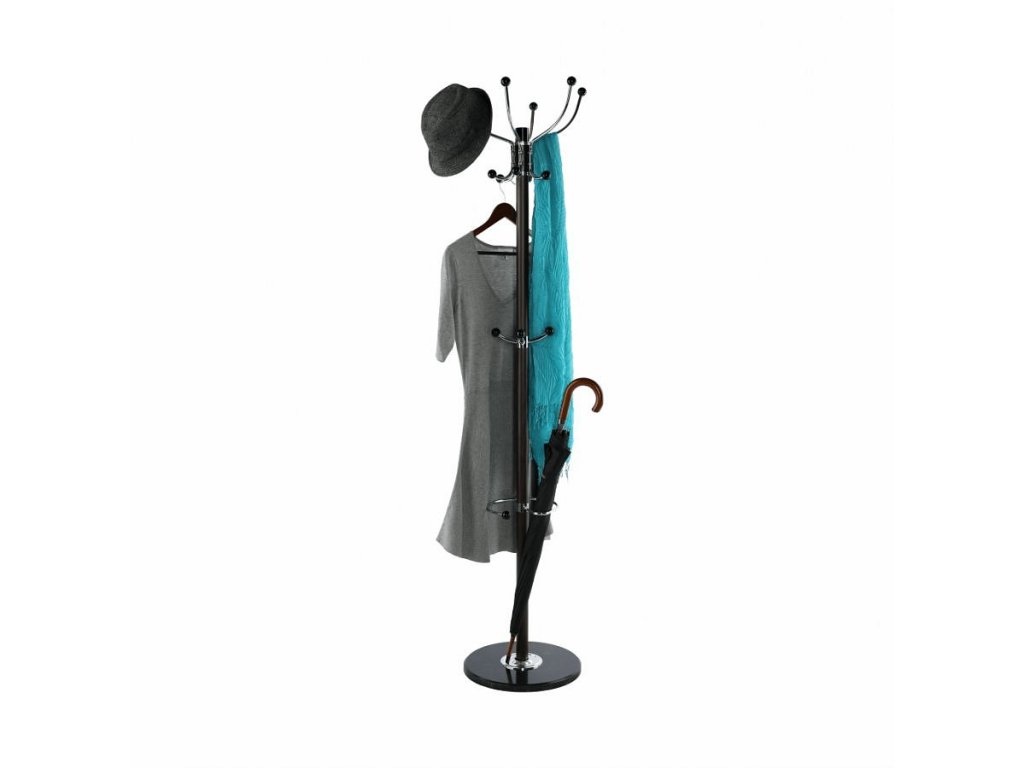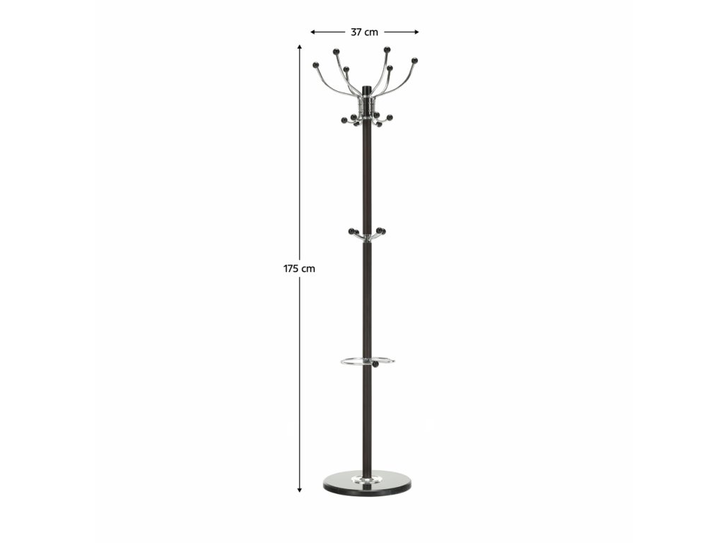 Materiál: kov / mramor Provedení: hnědá Rozměry (ŠxHxV): 37x37x175 cm mramorová podstava Dodávané v demontu. Nosnost háčku: 2 kg Golyóscsapággyal Forgó