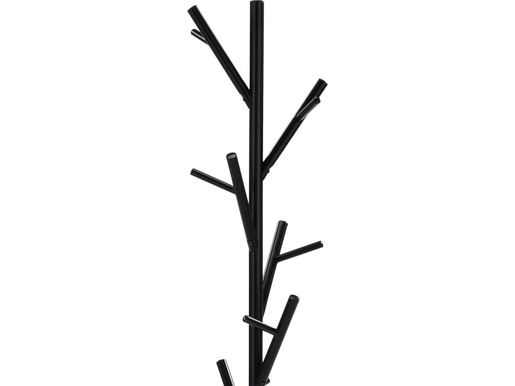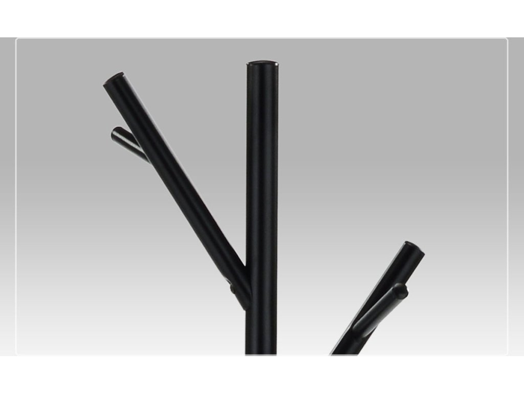 Stojanový věšák v černém matném provedení je vyroben z pevného kovu, který zajišťuje stabilitu a dlouhou životnost. Výška 170 cm nabízí dostatek prostoru pro zavěšení kabátů, bund i doplňků na několika větvích, které jsou rozmístěny asymetricky pro lepší přístupnost. Kulatá základna pevně drží věšák na místě a umožňuje nosnost až 10 kg. Jednoduchý a moderní design se hodí do různých interiérů, od kanceláří po domácnosti.