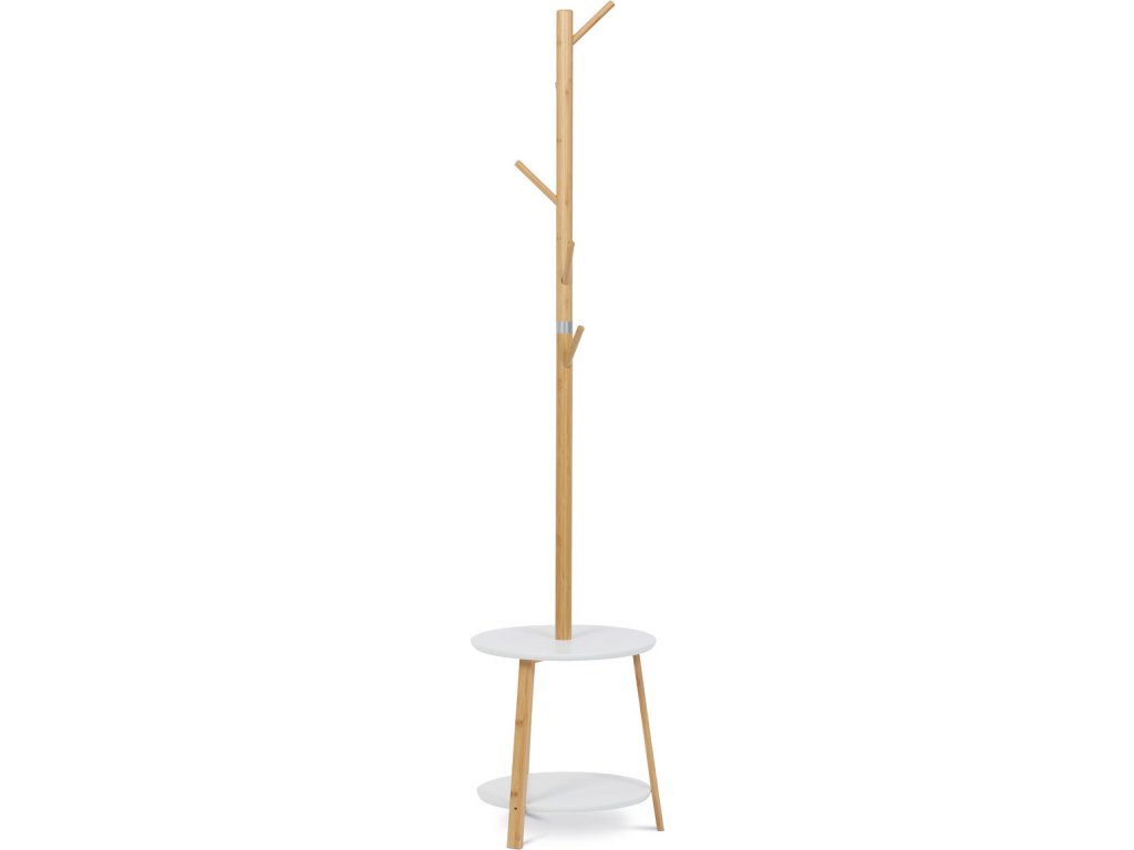 Věšák dřevěný stojanový, masiv bambus, bílá barva + přírodní odstín DR-N1004 WT