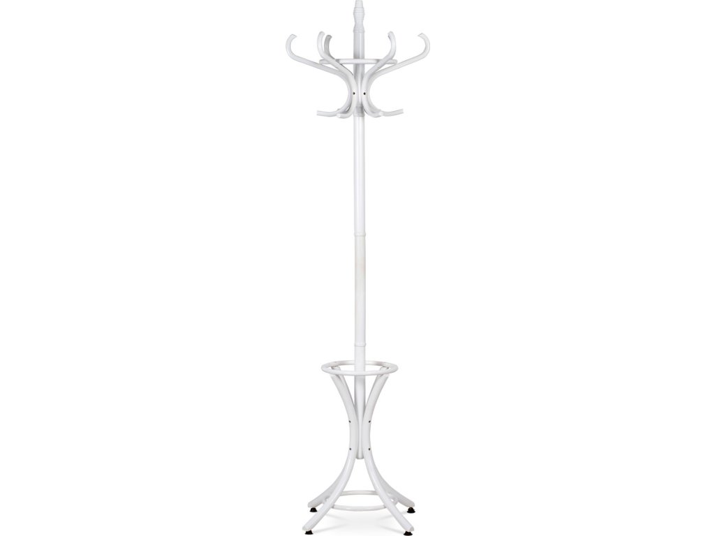 Věšák dřevěný stojanový, masiv topol a bříza, bílý matný lak, výška 185 cm F-2059 WT