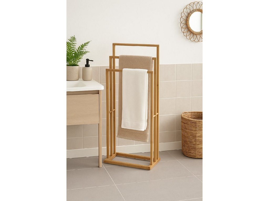 Bambusový věšák na ručníky, 82x42x24 cm.