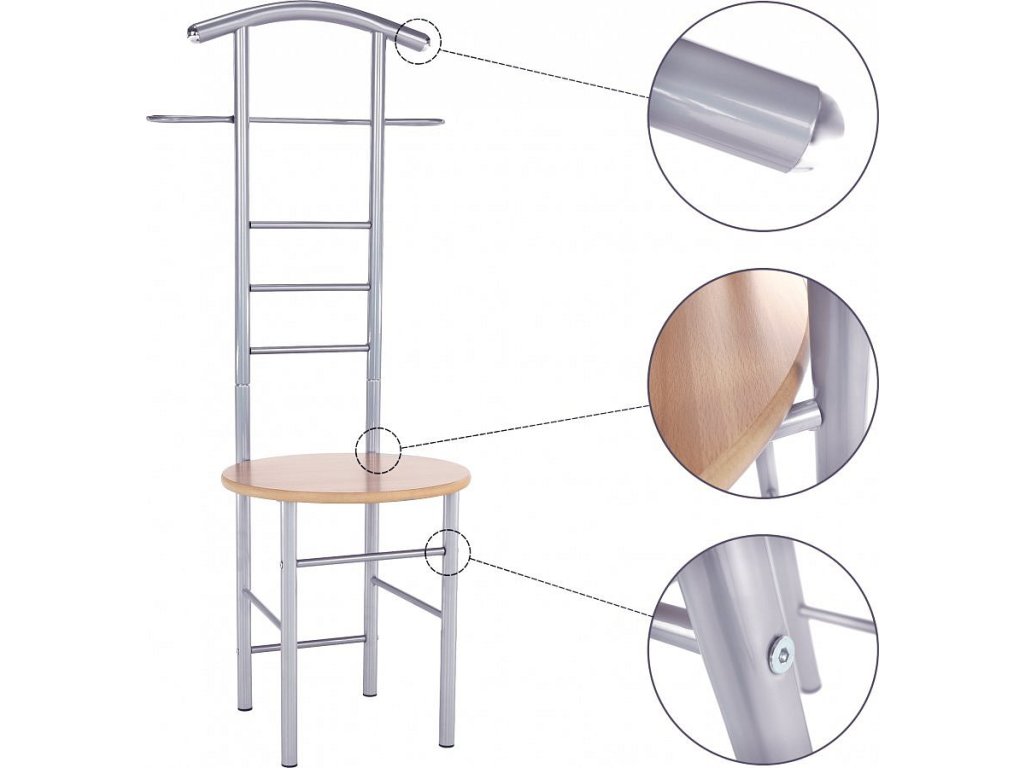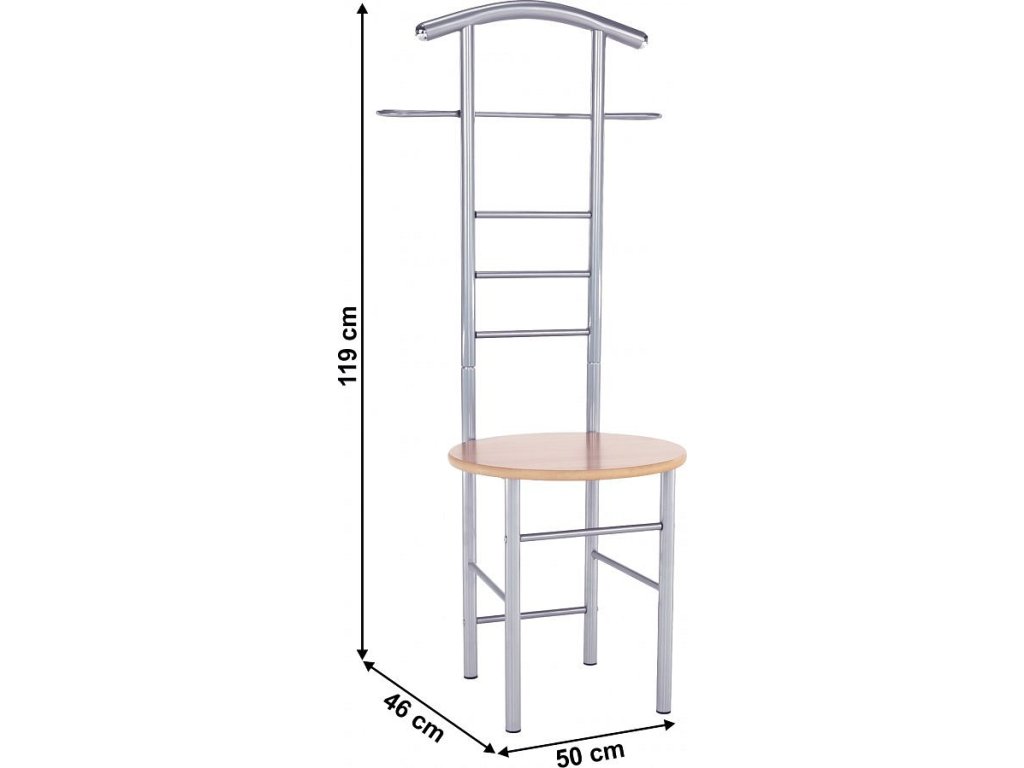 Věšák-sluha se židlí Frank Materiál: kov / MDF foliovaná, Provedení: buk / stříbrná Rozměry: ŠxHxV: 50x46x119 cm. Dodávané v demontu.