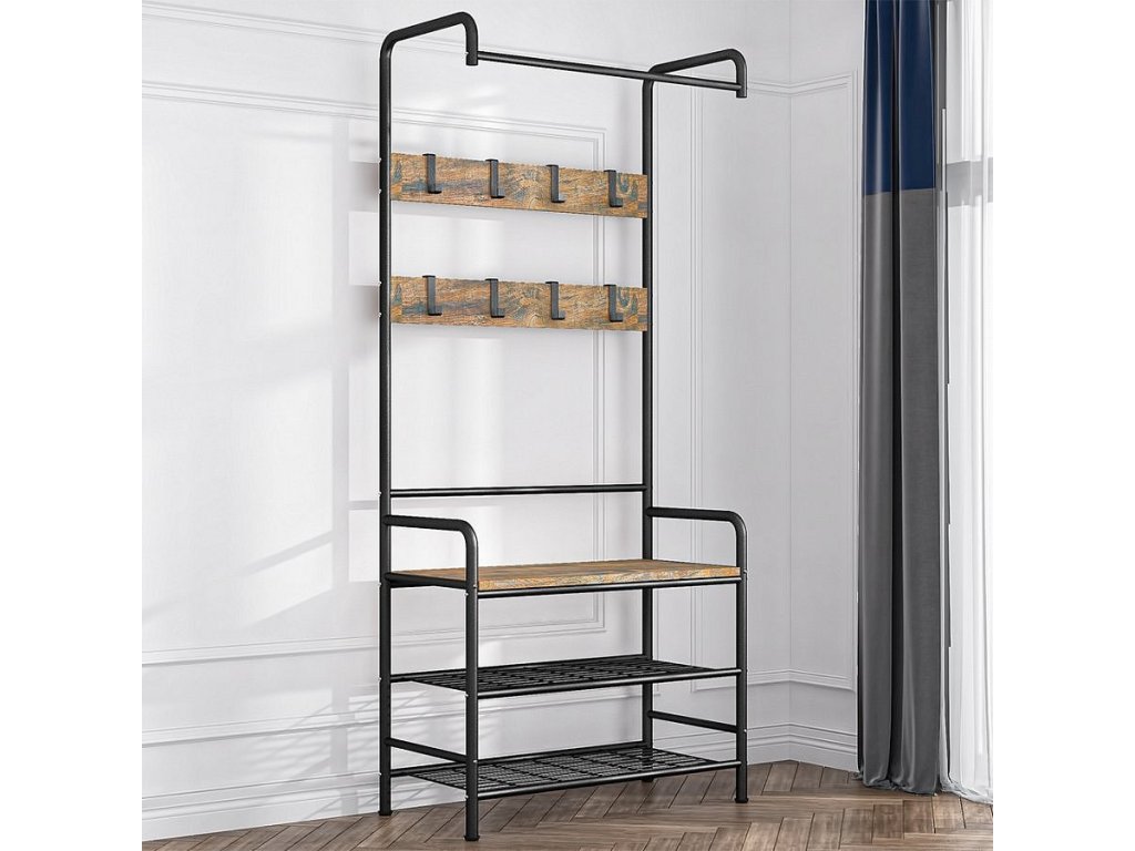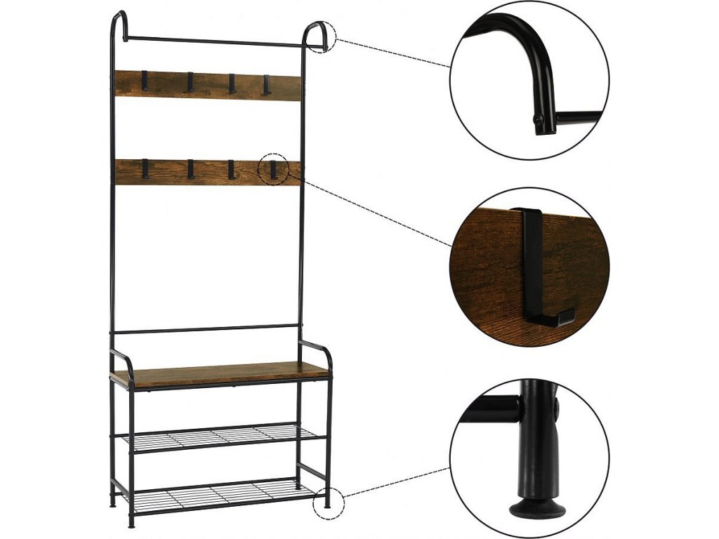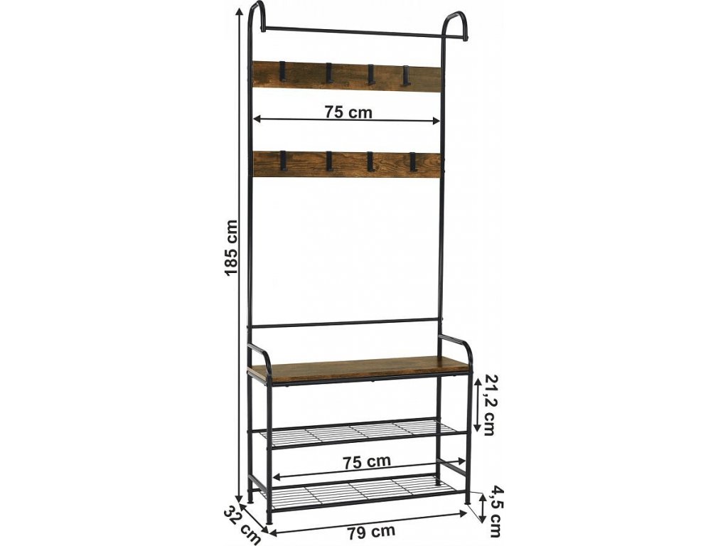 Věšáková stěna KELAM s botníkem, rustikální dřevo/černý kov