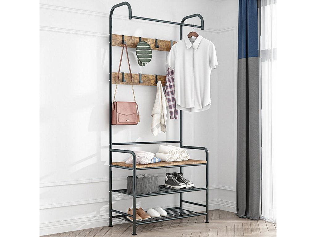 S háčky, věšákovou tyčí, lavicí na sezení.