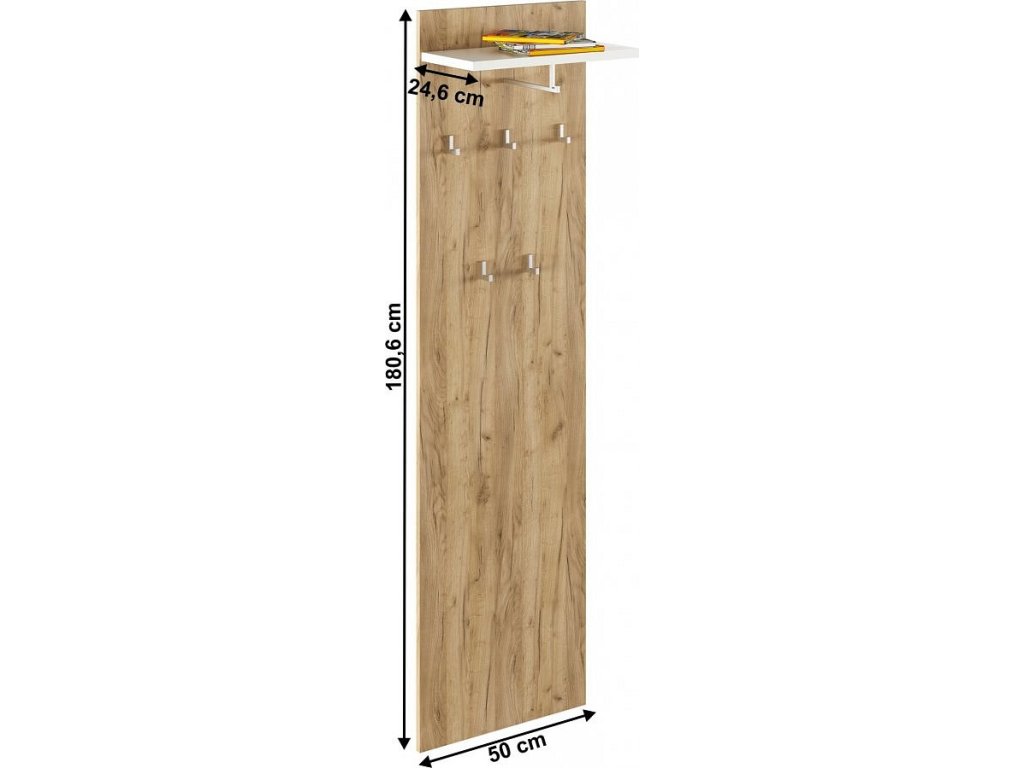 Věšákový panel RIOMA TYP 19 Materiál: DTD laminovaná, tloušťka lamina 22 mm Barva: dub artisan / bílá Rozměry (ŠxHxV): 50x24,6x180,6 cm Tloušťka materiálu: 16/22 mm Dodávané v demontu.