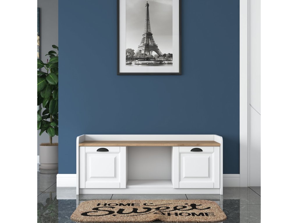 Botník je ideálním řešením pro udržení pořádku ve vaší předsíni. Kombinuje funkčnost a moderní design v atraktivní kombinaci bílé barvy a dekoru ořechu. Díky svému elegantnímu vzhledu a praktickému provedení je skvělým doplňkem každé domácnosti.