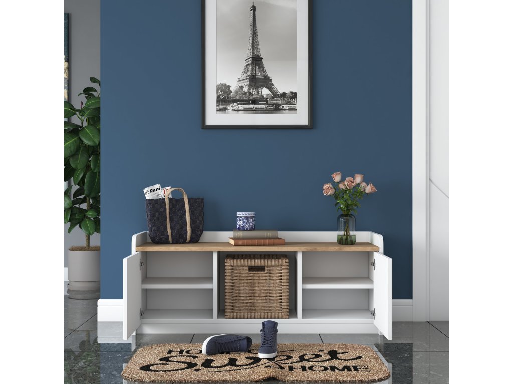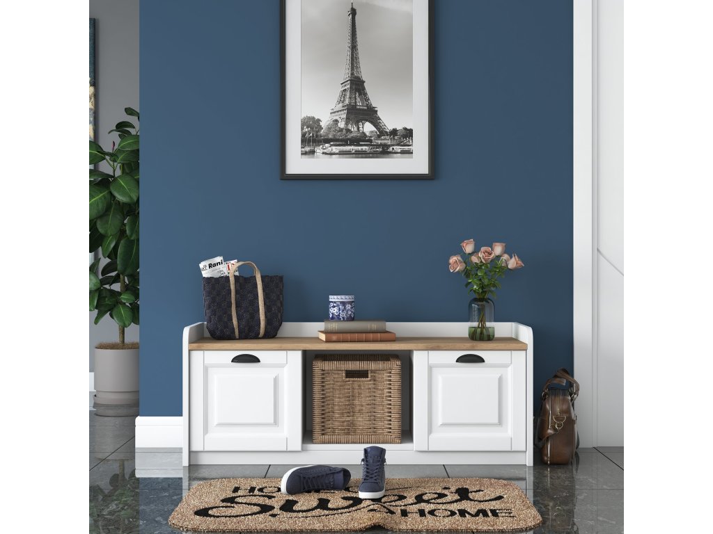 Botník je navržen tak, aby pomohl vytvořit organizovanou a stylovou předsíň. Jeho plná dvířka skryjí obuv i další předměty a zanechají prostor uklizený a přehledný.