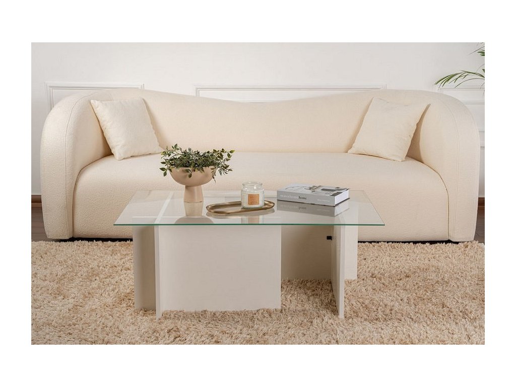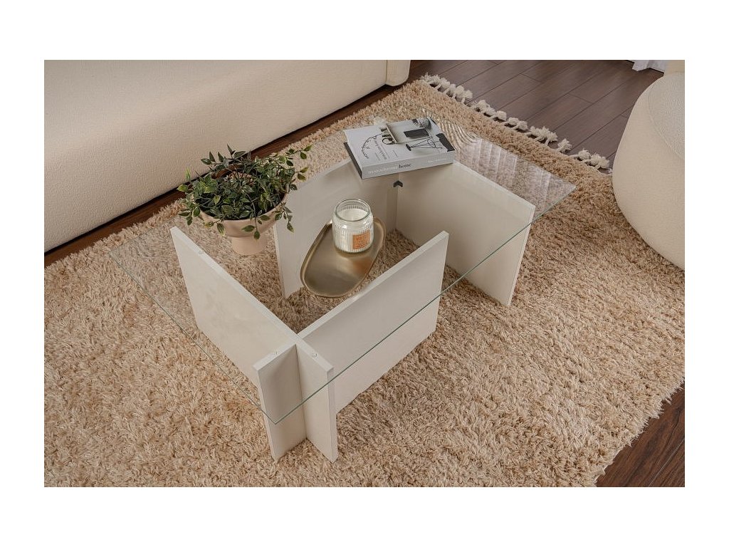 Vetrino prosklený konferenční stolek, bílé dřevo
