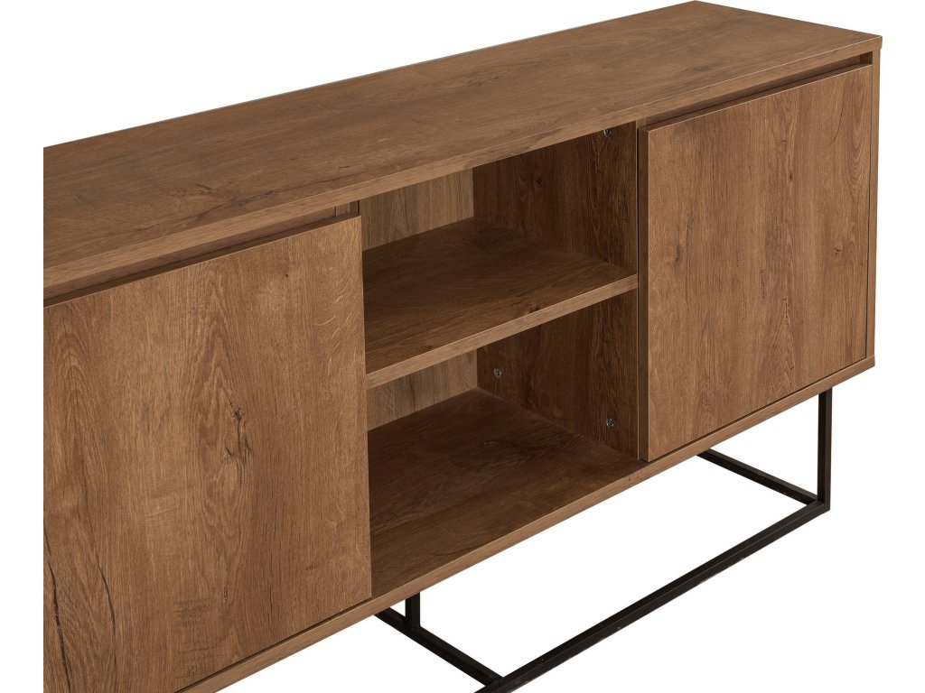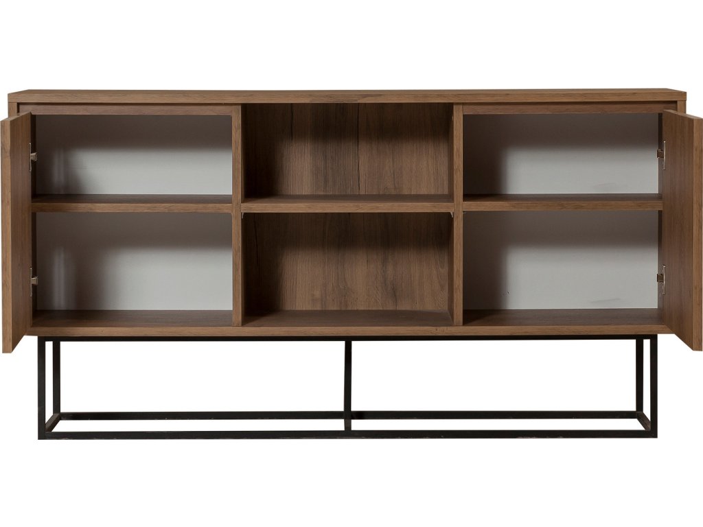 Komoda je ideální volbou pro milovníky moderního industriálního stylu. Její design v kombinaci dekoru ořechu a černých prvků přinese do vašeho obývacího pokoje šmrnc a zároveň poskytne praktické úložné prostory.