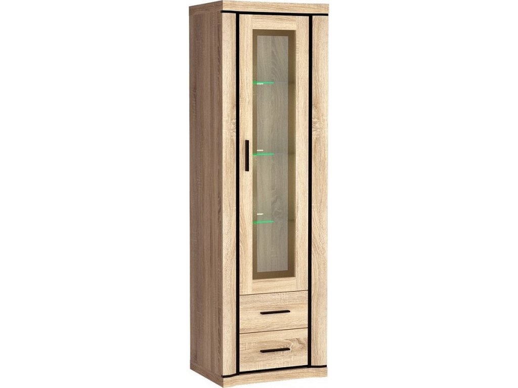 CASA 71003 Vitrína 1-dveřová ze sektorové řady má prosklené dveře, za nimi jsou 3 skleněné poličky, dole jsou dvě zásuvky. Má zajímavé provedení v podobě netradičně vyřezávaných vrchních a spodních desek. Systém je exkluzivní kolekce navržena v moderním duchu. Celá řada se vyznačuje masivním vzhledem a jednoduchými tvary. Nábytek je vyroben z kvalitního LTD s lištami z MDF, součástí nábytku jsou desky 48 mm, vše opatřeno ABS páskou. Barevné provedení - dub sonoma. Má široký výběr komponentů, díky kterým lze vybavit nejen obývací pokoj, ale i jídelnu nebo kancelář. Vitrína má univerzální otvírání dvířek. Dodáváme v demontovaném stavu.