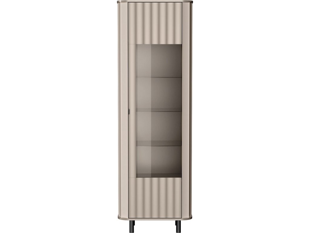 Vitrínu podepírají štíhlé kovové ocelové nožky práškově lakované o výšce 12 cm, které zajišťují nejen stabilitu, ale i lehkost vzhledu a snadnější úklid pod nábytkem. Jsou to kusy nábytku, které se nestylizují násilně, ale spíše podtrhují charakter prostoru.