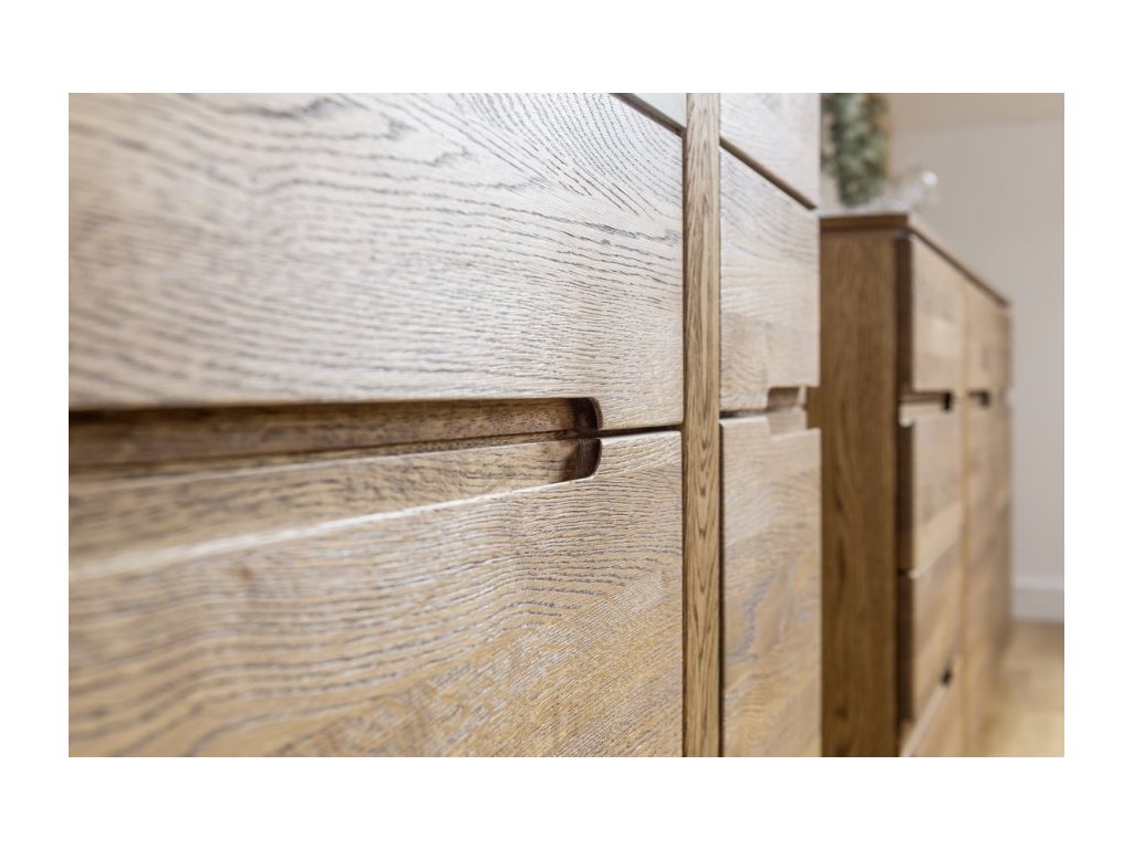 CASA 75021 Vitrína dvoudveřová prosklená. Jednoduché linie a kvalitní zpracování ve spojení s nadčasovým designem této řady dodají vaší jídelně nebo obývacímu pokoji jedinečný vzhled. Povrch vnějších částí je ošetřen olejem. Korpus je z vnější strany doplněn přírodní dubovou dýhou, vnitřní strana je z desky LTD v barvě přírodního dřeva. Dvířka jsou vyrobeny z masivního dubu rustikal, sklo je tvrzené v ocelovém rámu. Úchyty jsou vyfrézované do přední desky. Možno dokoupit LED osvětlení. Dodáváme již ve smontovaném stavu.