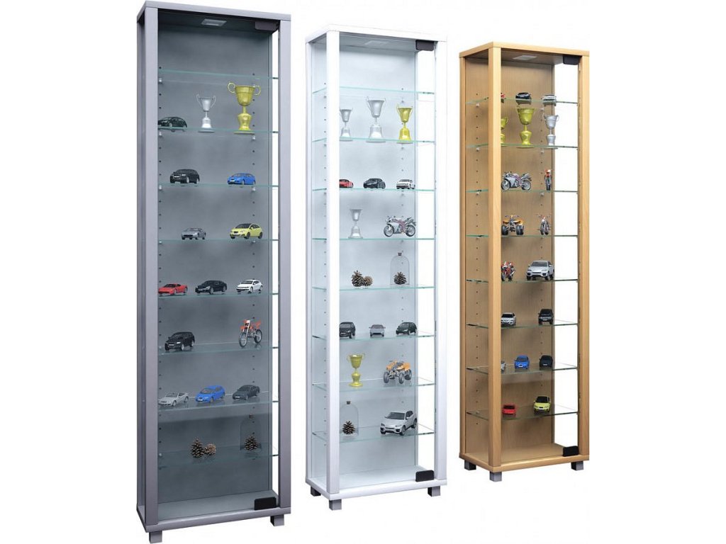 Vitrína EDANA s 8 variabilními policemi na prezentaci vašich sbírek či dekoračních předmětů ve vysokém standardu provedení. Vhodná jak do domácnosti, tak také v kancelářích či obchodních prostorech. Dveře, boční stěny i police jsou z čirého skla.