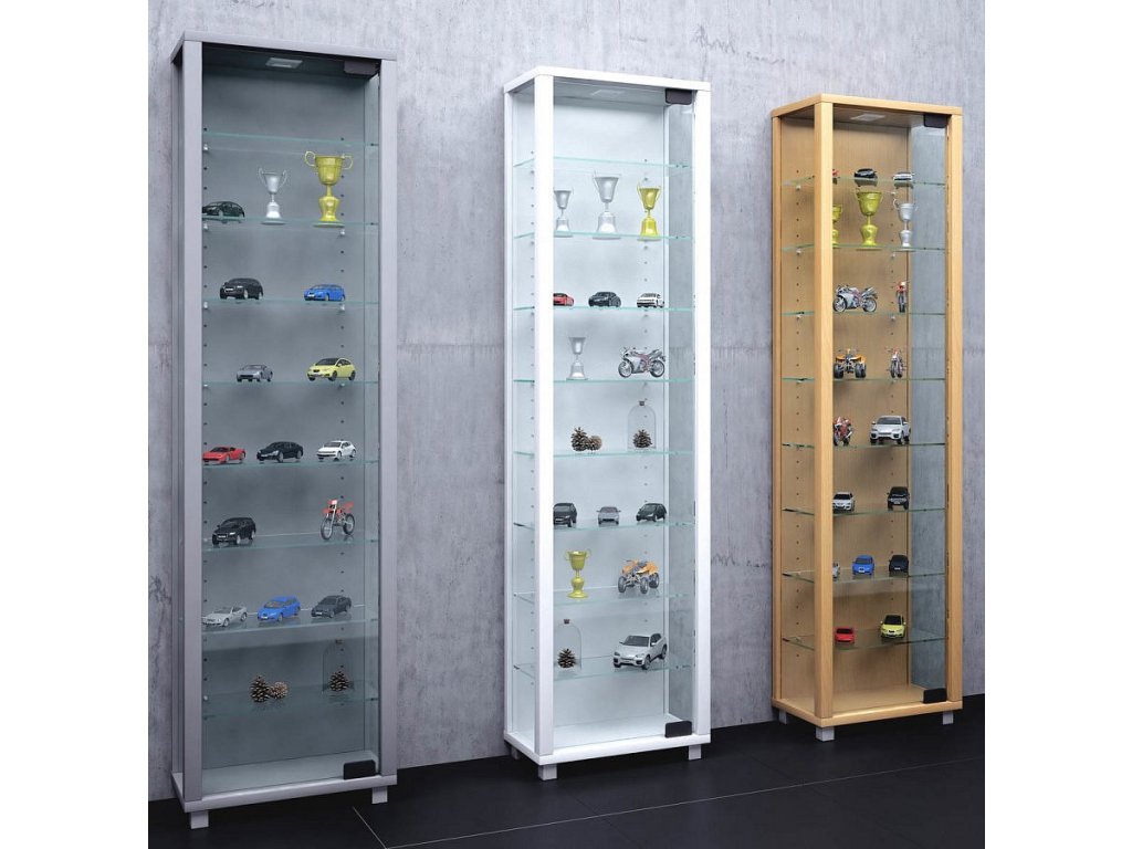 Vitrína EDANA s 8 variabilními policemi na prezentaci vašich sbírek či dekoračních předmětů ve vysokém standardu provedení. Vhodná jak do domácnosti, tak také v kancelářích či obchodních prostorech. Dveře, boční stěny i police jsou z čirého skla.