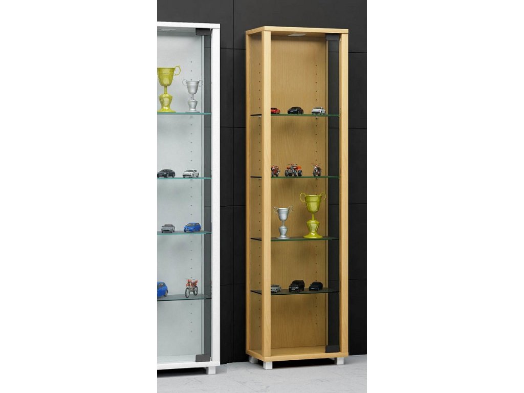 Vitrína EDANA se 4 variabilními policemi na prezentaci vašich sbírek či dekoračních předmětů ve vysokém standardu provedení. Vhodná jak do domácnosti, tak také v kancelářích či obchodních prostorech. Dveře, boční stěny i police jsou z čirého skla.