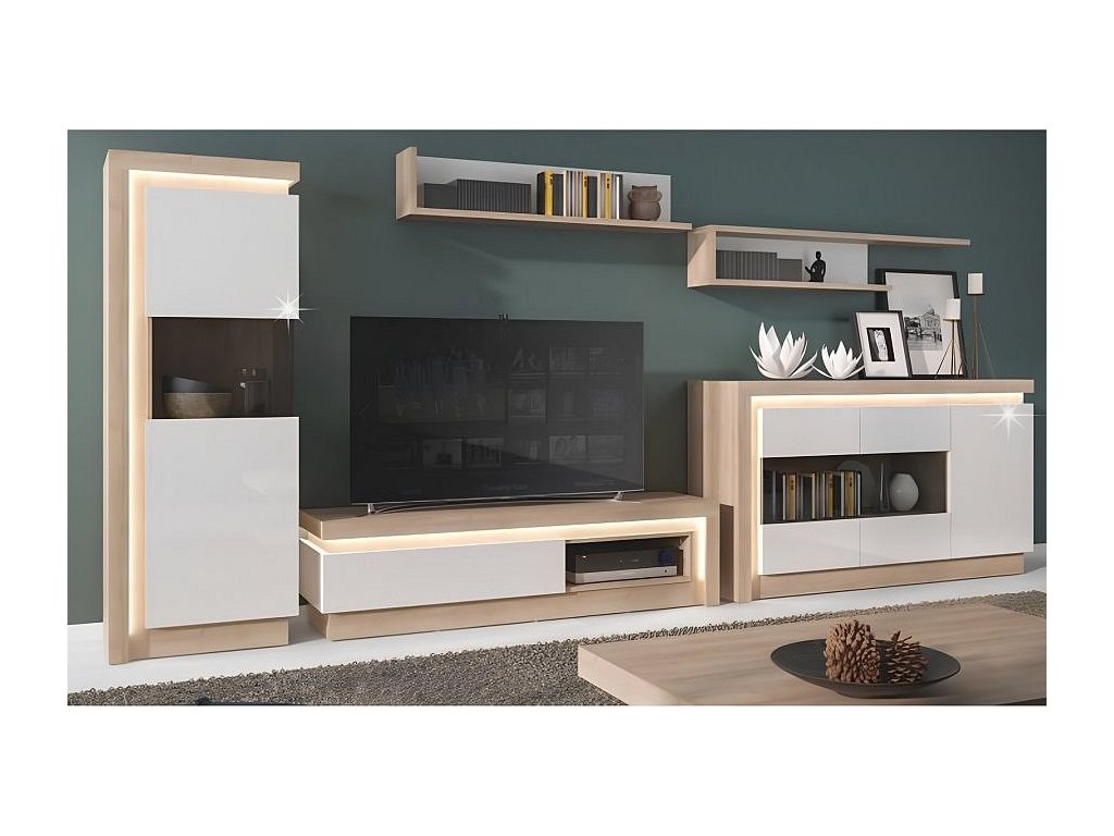 Vitrina LYOV01L ze sektorové sestavy LEONARDO v provedení dub riviera / bílá s extra vysokým leskem