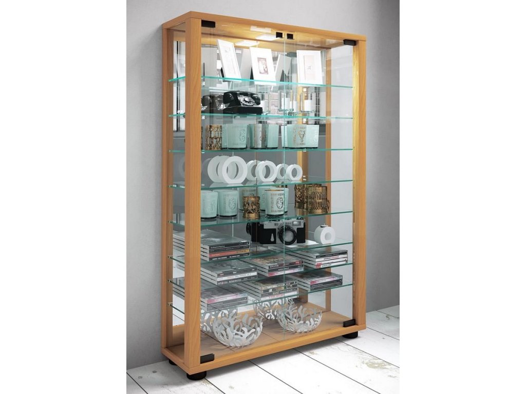 Tato prosklená vitrína VCM Lumo Mini vyniká kvalitním zpracováním a moderním designem. Díky zrcadlové zadní stěně působí elegantně a opticky zvětšuje prostor. Skvěle se hodí jako vitrína do obýváku, sběratelská vitrína nebo vitrína na modely, kde spolehlivě zvýrazní vystavené dekorace, sbírky či modely. Jako stabilní stojací vitrína nabízí přehledné uložení a její univerzální vzhled umožňuje začlenění do moderních i klasických interiérů. Přestože je kompaktní, svým vzhledem působí jako vysoká vitrína, která dodá prostoru eleganci a řád.