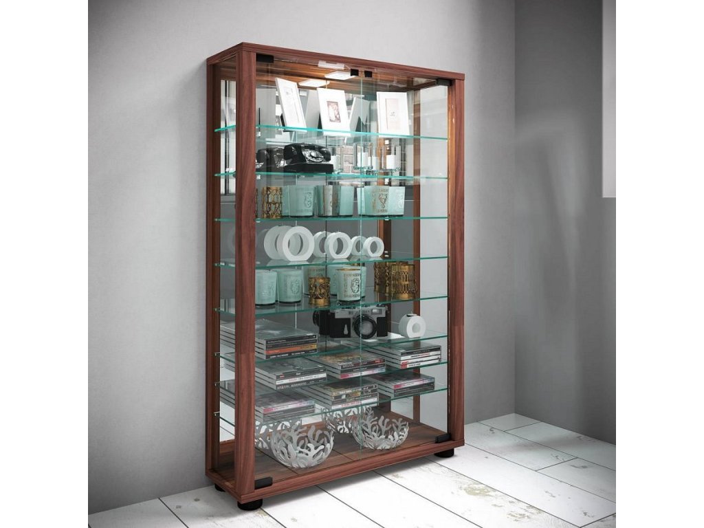 Tato prosklená vitrína VCM Lumo Mini vyniká kvalitním zpracováním a moderním designem. Díky zrcadlové zadní stěně působí elegantně a opticky zvětšuje prostor. Skvěle se hodí jako vitrína do obýváku, sběratelská vitrína nebo vitrína na modely, kde spolehlivě zvýrazní vystavené dekorace, sbírky či modely. Jako stabilní stojací vitrína nabízí přehledné uložení a její univerzální vzhled umožňuje začlenění do moderních i klasických interiérů. Přestože je kompaktní, svým vzhledem působí jako vysoká vitrína, která dodá prostoru eleganci a řád.