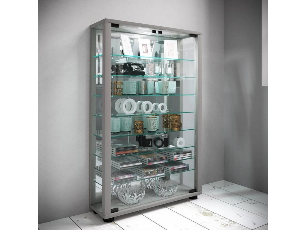 Tato prosklená vitrína VCM Lumo Mini vyniká kvalitním zpracováním a moderním designem. Díky zrcadlové zadní stěně působí elegantně a opticky zvětšuje prostor. Skvěle se hodí jako vitrína do obýváku, sběratelská vitrína nebo vitrína na modely, kde spolehlivě zvýrazní vystavené dekorace, sbírky či modely. Jako stabilní stojací vitrína nabízí přehledné uložení a její univerzální vzhled umožňuje začlenění do moderních i klasických interiérů. Přestože je kompaktní, svým vzhledem působí jako vysoká vitrína, která dodá prostoru eleganci a řád.
