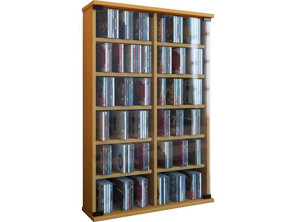 Praktická skříňka Roma pro odkládání CD, DVD nebo VHS opatřená dvěmi skleněnými dvířky z bezpečnostního skla.
