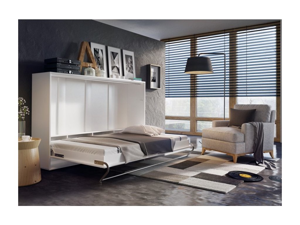 CASA 73005 Široká výklopná postel 90 bílá lesk/bílá mat. Korpus nábytku je v matné bílé barvě, čelo nábytku je v bílém lesku. Rozměry viz obrázek. Každý kus nábytku v novém provedení Vám umožní dokonale zařídit menší ložnici nebo obývací, dětský či studentský pokoj. Se sklápěcí postelí Vás už nebude trápit malý prostor Vaší domácnosti. Díky stabilní konstrukci zaručuje pohodlný odpočinek. Bezpečnost je velmi důležitá a tak má naše sklápěcí postel mechanismus, kterým zablokujete postel proti samovolnému otevření. Při sklápění postele FUNKCE STOP zajistí bezpečné otevírání i zavírání. Tento výjimečný systém Vám umožní manipulaci pouze jedním prstem. Když je postel sklopená, vypadá jako běžná komoda. Při rozložení postele má hloubku 127 cm. Vyklopením se vytáhne celá šířka postele. Rám je nutno přišroubovat ke zdi, nosnost postele je 100 kg. Rošt postele je v ceně, matrace není součástí, je potřeba ji dokoupit. Doporučujeme velikost 90 x 200 x výšku do 18 cm. Po sklopení postele vzniká prostor pod postelí o výšce 20,4 cm. Nábytek je vyroben z kvalitního lamina s ABS hranou. Lamino je odolné proti poškrábání, poškození, vlhkosti a vysokým teplotám. Postel nabízíme v několika velikostech a barevných provedeních. Dodáváme v demontovaném stavu.