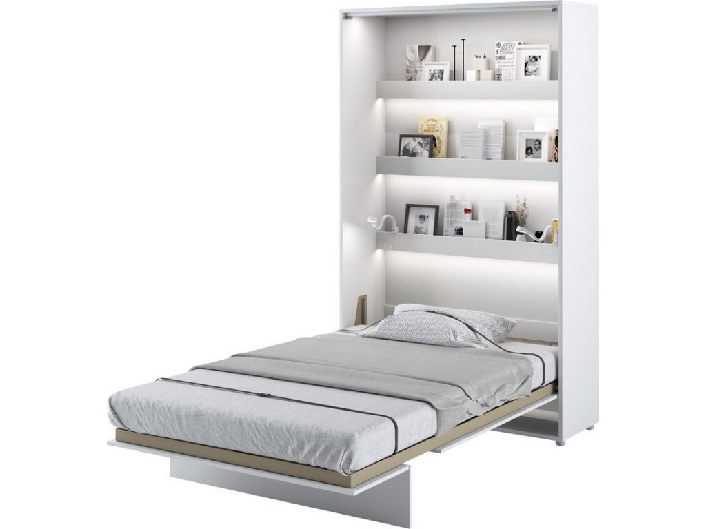 CASA 73026 Vysoká výklopná postel 120 bílá mat. Rozměry viz obrázek. Se sklápěcí postelí Vás už nebude trápit malý prostor Vaší domácnosti. Díky stabilní konstrukci zaručuje pohodlný odpočinek. Pneumatický mechanismus sklápění postele zajistí bezpečné otevírání a je doplněn SOFT CLOSE systémem tichého zavírání. Tento výjimečný systém Vám umožní manipulaci pouze jedním prstem. Když je postel sklopená, vypadá jako běžná skříň. Při lozložení postele má hloubku 228 cm. Vyklopením se vytáhne celá délka postele. Uvnitř skříně jsou praktické police na knížky nebo dekorační předměty, vše máte na dosah ruky. Maximální zatížení polic je 5 kg. Rám je nutno přišroubovat ke zdi, nosnost postele je 150 kg. Rošt postele je v ceně, matrace není součástí, je potřeba ji dokoupit. Doporučujeme velikost 120 x 200 x výšku do 18 cm. Po sklopení postele vzniká prostor pod postelí o výšce 24,9 cm. Nábytek je vyroben z kvalitního lamina s ABS hranou. Lamino je odolné proti poškrábání, poškození, vlhkosti a vysokým teplotám. Postel nabízíme v několika velikostech a barevných provedeních. K posteli je možné dokoupit LED osvětlení. Dodáváme v demontovaném stavu.