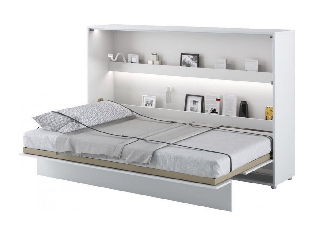 CASA 73026 Široká výklopná postel 120 bílá lesk/bílá mat. Rozměry viz obrázek. Se sklápěcí postelí Vás už nebude trápit malý prostor Vaší domácnosti. Díky stabilní konstrukci zaručuje pohodlný odpočinek. Pneumatický mechanismus sklápění postele zajistí bezpečné otevírání a je doplněn SOFT CLOSE systémem tichého zavírání. Tento výjimečný systém Vám umožní manipulaci pouze jedním prstem. Když je postel sklopená, vypadá jako běžná skříň. Vyklopením se vytáhne celá šířka postele. Při lozložení postele má hloubku 148 cm. Uvnitř skříně jsou praktické police na knížky nebo dekorační předměty, vše máte na dosah ruky. Maximální zatížení polic je 5 kg. Rám je nutno přišroubovat ke zdi, nosnost postele je 150 kg. Rošt postele je v ceně, matrace není součástí, je potřeba ji dokoupit. Doporučujeme velikost 120 x 200 x výšku do 18 cm. Po sklopení postele vzniká prostor pod postelí o výšce 24,9 cm. Nábytek je vyroben z kvalitního lamina s ABS hranou. Lamino je odolné proti poškrábání, poškození, vlhkosti a vysokým teplotám. Postel nabízíme v několika velikostech a barevných provedeních. K posteli je možné dokoupit LED osvětlení. Dodáváme v demontovaném stavu.
