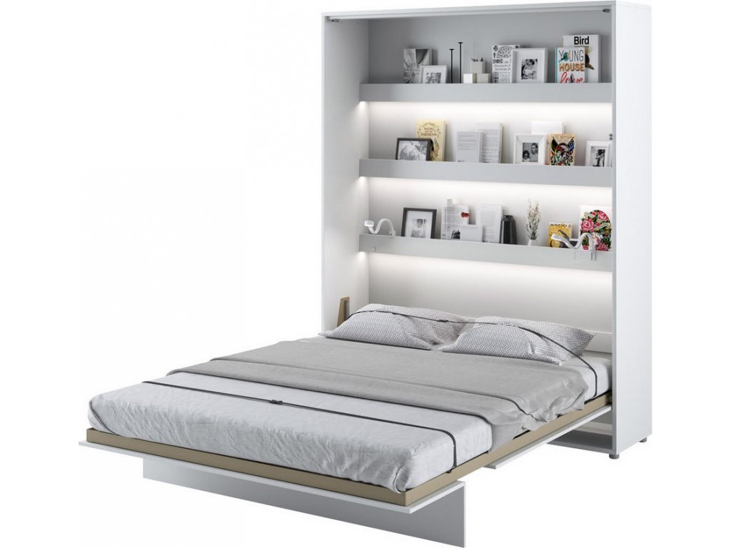 CASA 73026 Vysoká výklopná postel 160 bílá mat. Rozměry viz obrázek. Se sklápěcí postelí Vás už nebude trápit malý prostor Vaší domácnosti. Díky stabilní konstrukci zaručuje pohodlný odpočinek. Pneumatický mechanismus sklápění postele zajistí bezpečné otevírání a je doplněn SOFT CLOSE systémem tichého zavírání. Tento výjimečný systém Vám umožní manipulaci pouze jedním prstem. Když je postel sklopená, vypadá jako běžná skříň. Vyklopením se vytáhne celá délka postele. Při lozložení postele má hloubku 228 cm. Uvnitř skříně jsou praktické police na knížky nebo dekorační předměty, vše máte na dosah ruky. Rám je nutno přišroubovat ke zdi, nosnost postele je 200 kg. Rošt postele je v ceně, matrace není součástí, je potřeba ji dokoupit. Doporučujeme velikost 160 x 200 x výšku do 18 cm. Po sklopení postele vzniká prostor pod postelí o výšce 20,4 cm. Nábytek je vyroben z kvalitního lamina s ABS hranou. Lamino je odolné proti poškrábání, poškození, vlhkosti a vysokým teplotám. Postel nabízíme v několika velikostech a barevných provedeních. K posteli je možné dokoupit LED osvětlení. Dodáváme v demontovaném stavu.