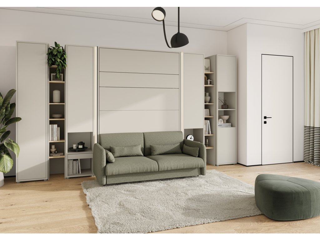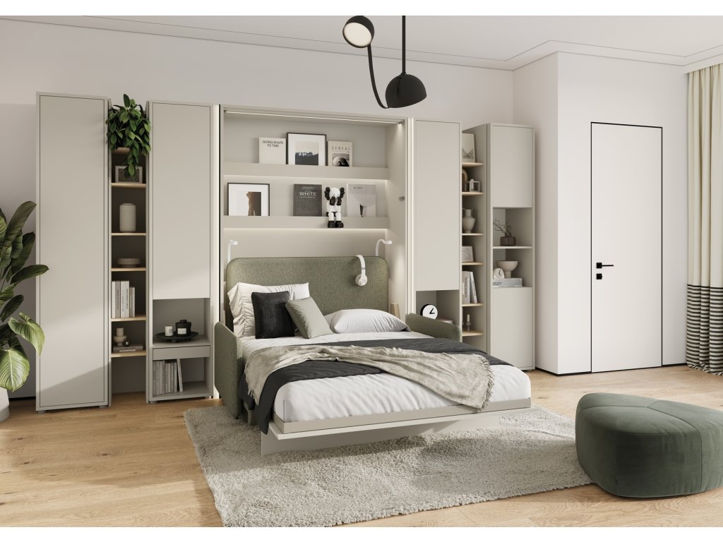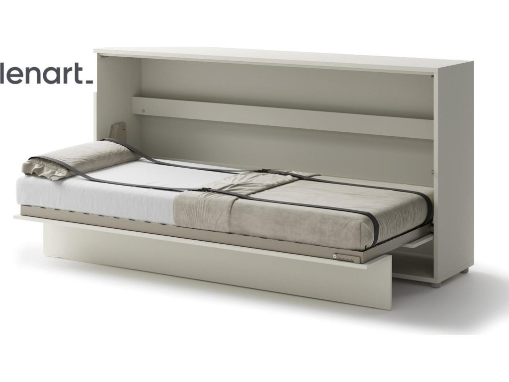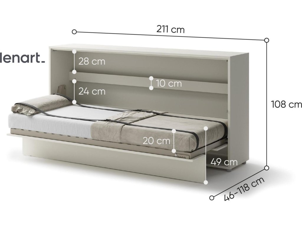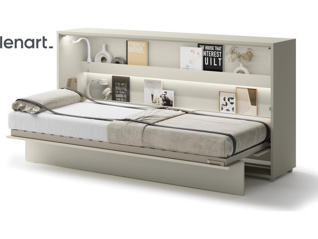 CASA 73026 Široká výklopná postel 90 kašmír (béžová s nádechem šedé). Rozměry viz obrázek. Se sklápěcí postelí Vás už nebude trápit malý prostor Vaší domácnosti. Díky stabilní konstrukci zaručuje pohodlný odpočinek. Pneumatický mechanismus sklápění postele zajistí bezpečné otevírání a je doplněn SOFT CLOSE systémem tichého zavírání. Tento výjimečný systém Vám umožní manipulaci pouze jedním prstem. Když je postel sklopená, vypadá jako běžná skříň. Vyklopením se vytáhne celá šířka postele. Při lozložení postele má hloubku 118 cm. Uvnitř skříně jsou praktické police na knížky nebo dekorační předměty, vše máte na dosah ruky. Maximální zatížení polic je 5 kg. Rám je nutno přišroubovat ke zdi, nosnost postele je 100 kg. Rošt postele je v ceně, matrace není součástí, je potřeba ji dokoupit. Doporučujeme velikost 90 x 200 x výšku do 18 cm. Po sklopení postele vzniká prostor pod postelí o výšce 24,9 cm. Nábytek je vyroben z kvalitního lamina s ABS hranou. Lamino je odolné proti poškrábání, poškození, vlhkosti a vysokým teplotám. Postel nabízíme v několika velikostech a barevných provedeních. K posteli je možné dokoupit LED osvětlení. Dodáváme v demontovaném stavu.