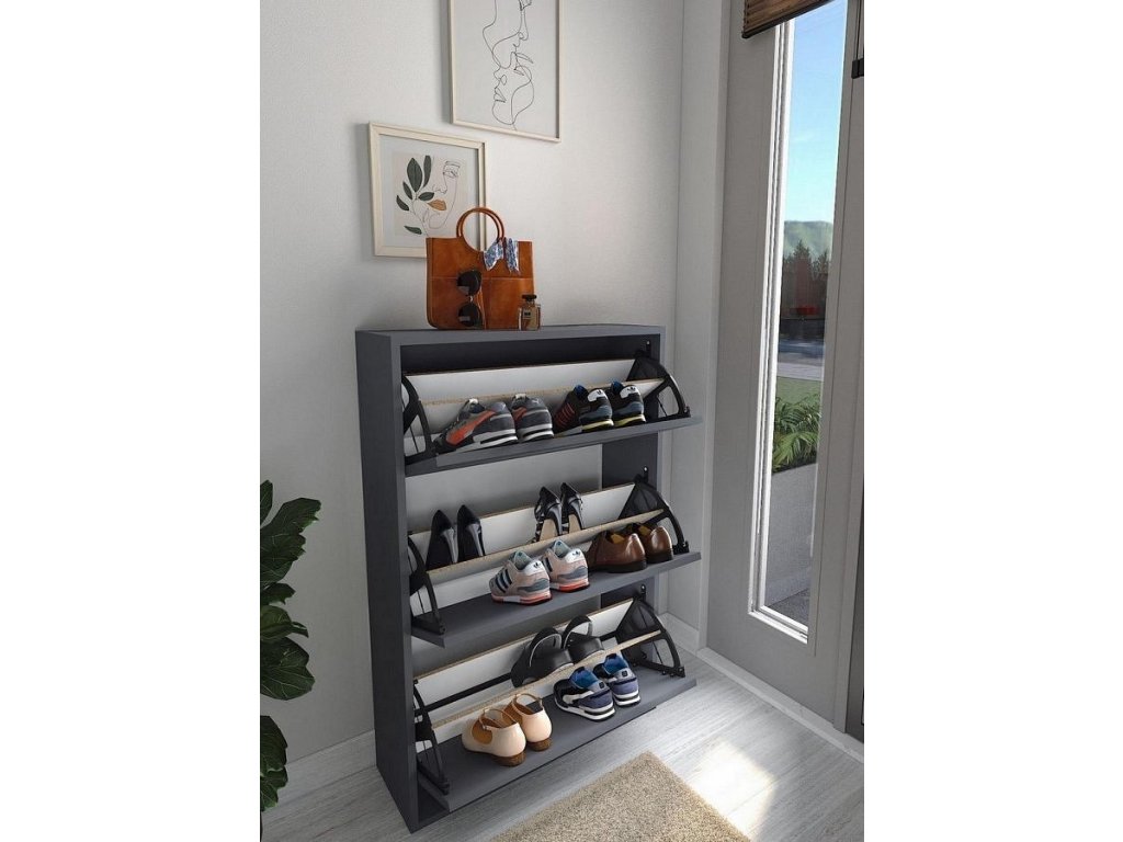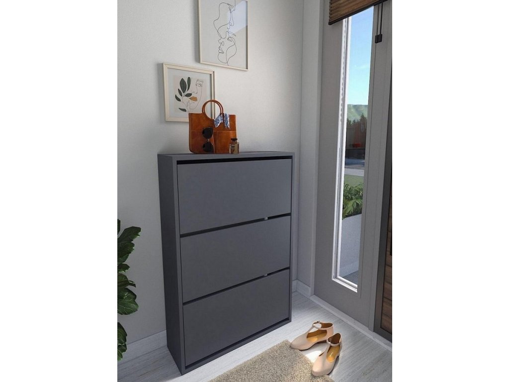 CASA 36054 Botník s výklopnými dvířky je vyroben z kvalitní desky LTD nenáročné na údržbu, v barevném provedení antracit. Tloušťka materiálu - 18 mm. Dodáváme v demontovaném stavu.